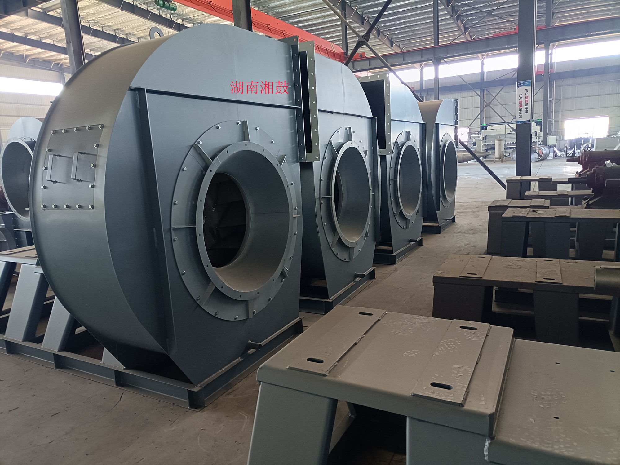 湖南湘鼓鼓風(fēng)機制造有限公司(長沙第二風(fēng)機廠)原廠建于1978年,機械部定點生產(chǎn)風(fēng)機的企業(yè),原設(shè)有長沙地區(qū)風(fēng)機檢測站。于2016年重組遷入湖南益陽。公司占地32畝,擁有各類主要加工檢測設(shè)備100余臺套,是目前湖南省具一定規(guī)模的鼓風(fēng)機及配件制造廠家。現(xiàn)已生產(chǎn)離心式通風(fēng)機(又稱離心風(fēng)機)和羅茨鼓風(fēng)機二大系列,按用途分為高溫風(fēng)機、不銹鋼高溫風(fēng)機、不銹鋼離心通風(fēng)機、造紙通風(fēng)機、襯膠防腐風(fēng)機、除塵風(fēng)機、脫硫塔風(fēng)機、增壓風(fēng)機、鍋爐風(fēng)機、掃路車風(fēng)機、貼陶瓷耐磨風(fēng)機、窯爐風(fēng)機(磚窯風(fēng)機)、煤粉灰輸送風(fēng)機、燃燒器助燃鼓風(fēng)機、斜槽高壓風(fēng)機、化鐵爐風(fēng)機、造氣鼓風(fēng)機、養(yǎng)殖增氧風(fēng)機、污水處理曝氣鼓風(fēng)機、脫硫氧化鼓風(fēng)機、氣力輸送鼓風(fēng)機、印刷送風(fēng)機、電鍍槽鼓風(fēng)機等三十多個系列通用型及十多個系列特種型風(fēng)機,按國標型號分:4-72,T4-72,4-68,4-79,9-19,9-26,8-09,9-12,C6-48,C6-46,C4-73,GY4-68,GY4-73,GY6-51,GY8-39,GY9-38,GY6-30,GY6-48,GY6-41,GY5-51,GY5-47,GY5-48,GD30K2-12,以及XG80-500口徑的羅茨鼓風(fēng)機。更多產(chǎn)品詳細介紹在首頁菜單檔上的產(chǎn)品中心 http://www.cshfhb.com/pclass/?classa=1
